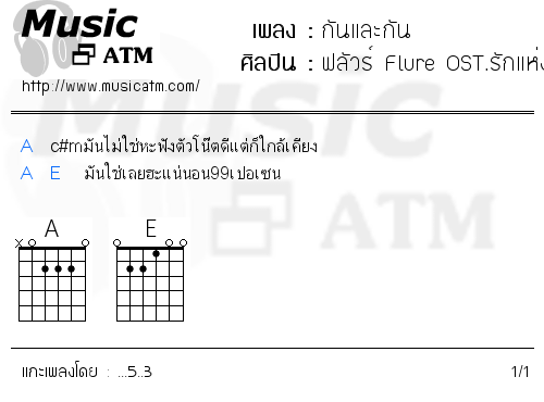 คอร์ดเพลง กันและกัน - ฟลัวร์ Flure OST.รักแห่งสยาม Version 6 แกะโดย ...5..3 เมื่อ 25 พ.ย.2550,21:40น. ดู 995 ครั้ง แชร์ 13 7 พิมพ์คอร์ด เปลี่ยนคีย์ -6 -5 -4 -3 -2 -1 คีย์ปกติ +1 +2 +3 +4 +5 +6 5 A c#mมันไม่ใช่หะฟังตัวโน๊ตดีแต่ก็ใกล้เคียงA E มันใช่เลยฮะแน่นอน99เปอเซน ดู Tab (7) ช่วยกันปรับปรุงคอร์ด เปรียบเทียบแต่ละเวอร์ชั่น แสดงคอร์ดเพลงเป็นแบบข้อความ ความคิดเห็นเกี่ยวกับคอร์ดนี้ คลิกที่รูป เพื่อแทรกรูปลงในข้อความ โพสต์ความคิดเห็น แสดงเพิ่มเติม แสดงเพิ่มเติม