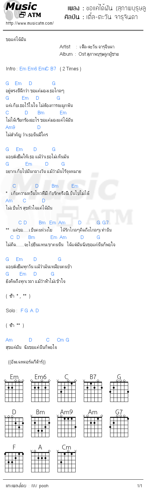คอร์ดเพลง ขอแค่ได้ฝัน (สุภาพบุรุษลูกผู้ชาย) - เติ้ล-ตะวัน จารุจินดา