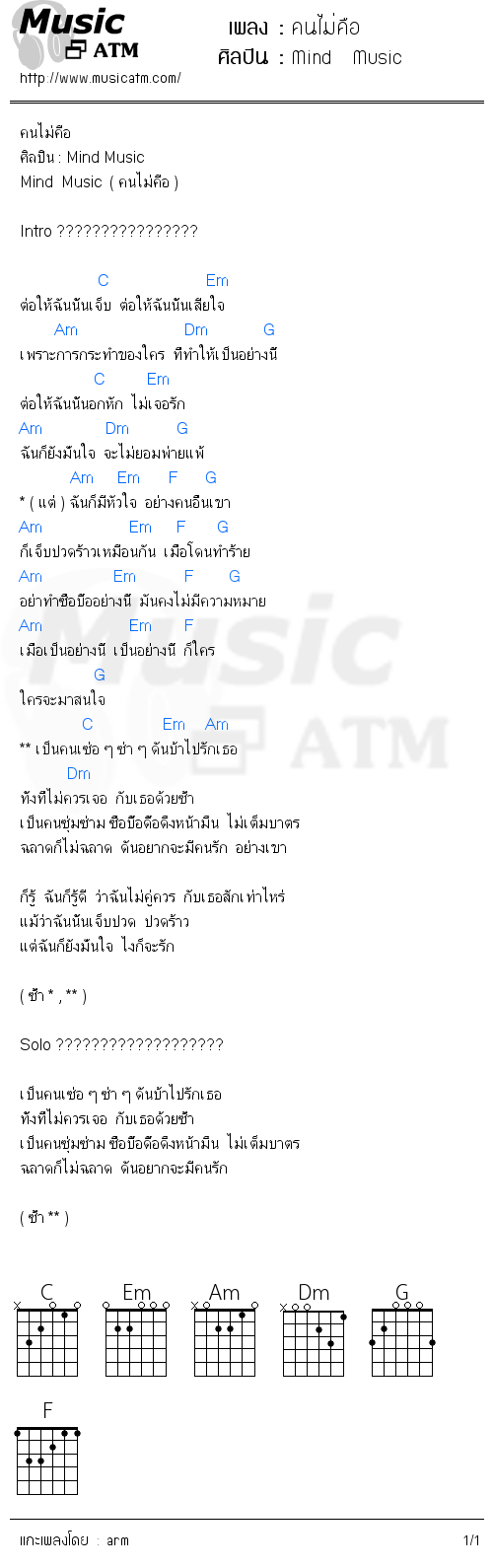 คอร์ดเพลง คนไม่คือ - Mind Music
