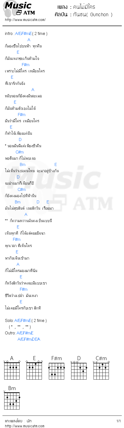 คอร์ดเพลง คนไม่มีใคร - กันชน( Gunchon )