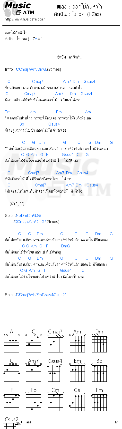 คอร์ดเพลง ดอกไม้กับหัวใจ - ไอแซค (I-Zax)