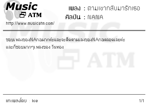 คอร์ดเพลง ตามเขากลับมารักเธอ - NANA Version 5 แกะโดย kie เมื่อ 19 ธ.ค.2550,11:08น. ดู 657 ครั้ง แชร์ 0 0 พิมพ์คอร์ด เปลี่ยนคีย์ -6 -5 -4 -3 -2 -1 คีย์ปกติ +1 +2 +3 +4 +5 +6 5 ชอบเพลงของNAnaมากค่ะและจะติดตามเลงของNAnaตลอดเลยค่ะและก็ชอบมากๆเพลงของ วันทอง เขียน Tab ช่วยกันปรับปรุงคอร์ด เปรียบเทียบแต่ละเวอร์ชั่น แสดงคอร์ดเพลงเป็นแบบข้อความ ความคิดเห็นเกี่ยวกับคอร์ดนี้ คลิกที่รูป เพื่อแทรกรูปลงในข้อความ โพสต์ความคิดเห็น แสดงเพิ่มเติม แสดงเพิ่มเติม