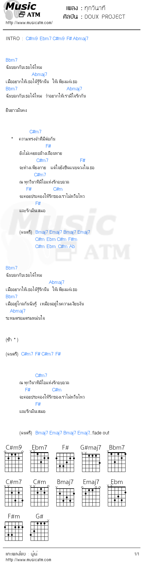 คอร์ดเพลง ทุกวินาที - DOUX PROJECT