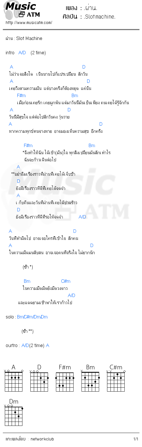 คอร์ดเพลง .ผ่าน. - .Slotmachine.