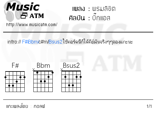 คอร์ดเพลง พรมลิขิต - บิ๊กแอส Version 8 แกะโดย กอลฟ เมื่อ 16 ก.พ.2550,18:09น. ดู 964 ครั้ง แชร์ 0 0 พิมพ์คอร์ด เปลี่ยนคีย์ -6 -5 -4 -3 -2 -1 คีย์ปกติ +1 +2 +3 +4 +5 +6 5 intro:// F#/Bbm/c#m/Bsus2 ใช้คอร์ดนี้ก็ได้คีย์มันจริงๆๆลองแกะนะ เขียน Tab ช่วยกันปรับปรุงคอร์ด เปรียบเทียบแต่ละเวอร์ชั่น แสดงคอร์ดเพลงเป็นแบบข้อความ ความคิดเห็นเกี่ยวกับคอร์ดนี้ คลิกที่รูป เพื่อแทรกรูปลงในข้อความ โพสต์ความคิดเห็น แสดงเพิ่มเติม แสดงเพิ่มเติม