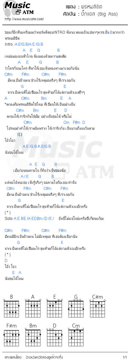 ขอแก้อีกทีนะครับผมว่าคอร์ดดีตอนINTRO ฟังกะเพลงแล้วแปลกๆควรเป็น B มากกว่า