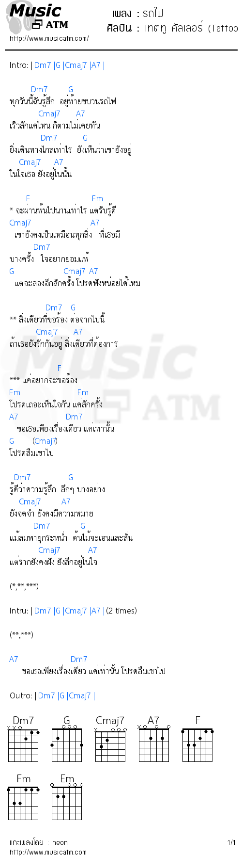 คอร์ดเพลง รถไฟ - แทตทู คัลเลอร์ (Tattoo Colour)