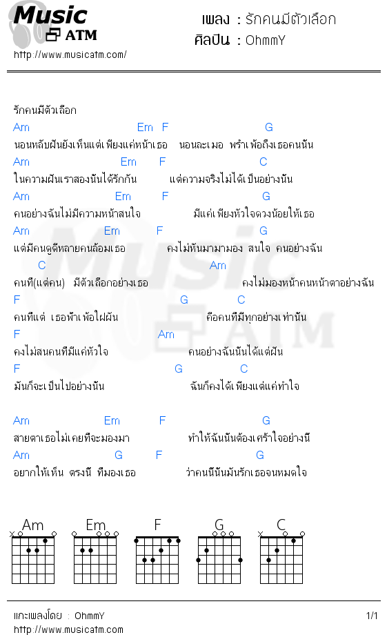 คอร์ดเพลง รักคนมีตัวเลือก - OhmmY