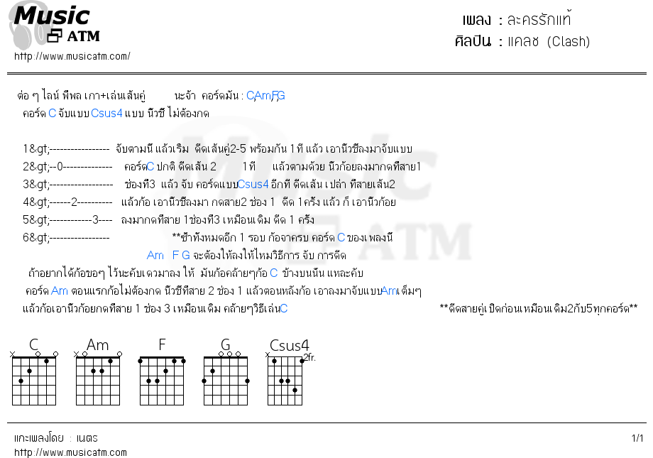 คอร์ด Am ตอนแรกก้อไม่ต้องกด นิ้วชี้ที่สาย 2 ช่อง 1 แล้วตอนหลังก้อ เอาลงมาจับแบบAmเต็มๆ