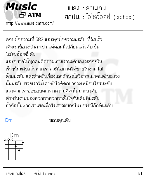 คอร์ดเพลง ส่วนเกิน - ไอโซฮ๊อคซี่ (ixohoxi)