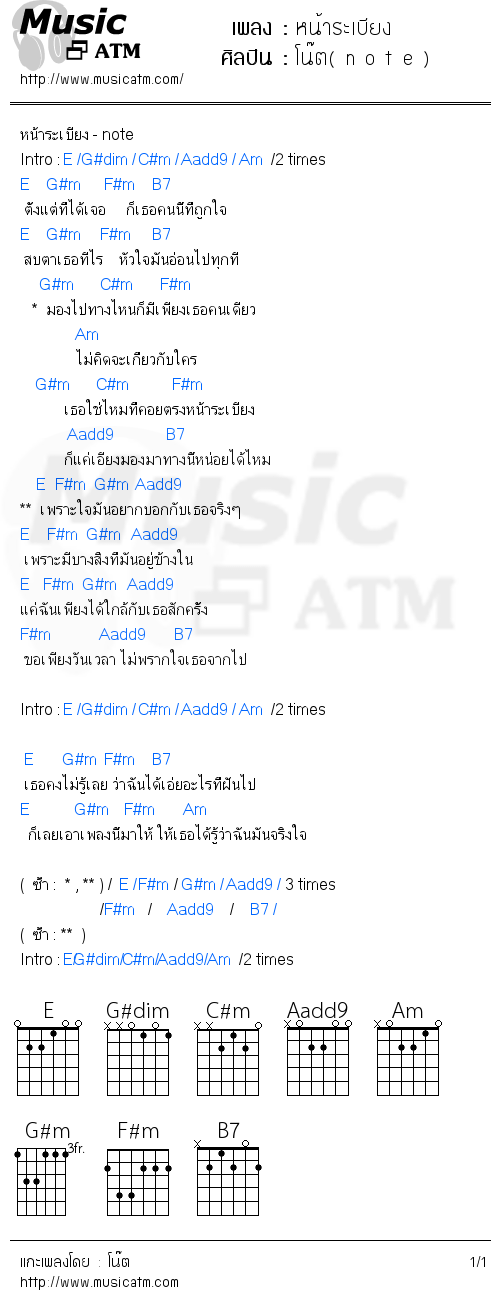 ( ซ้ำ : * , ** ) / E / F#m / G#m / Aadd9 / 3 times