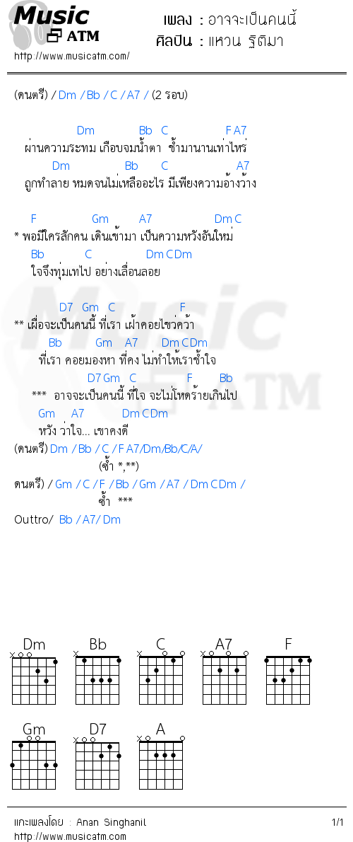 (ดนตรี) Dm / Bb / C / F A7/Dm/Bb/C/A/