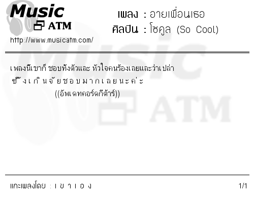 คอร์ดเพลง อายเพื่อนเธอ - โซคูล (So Cool)