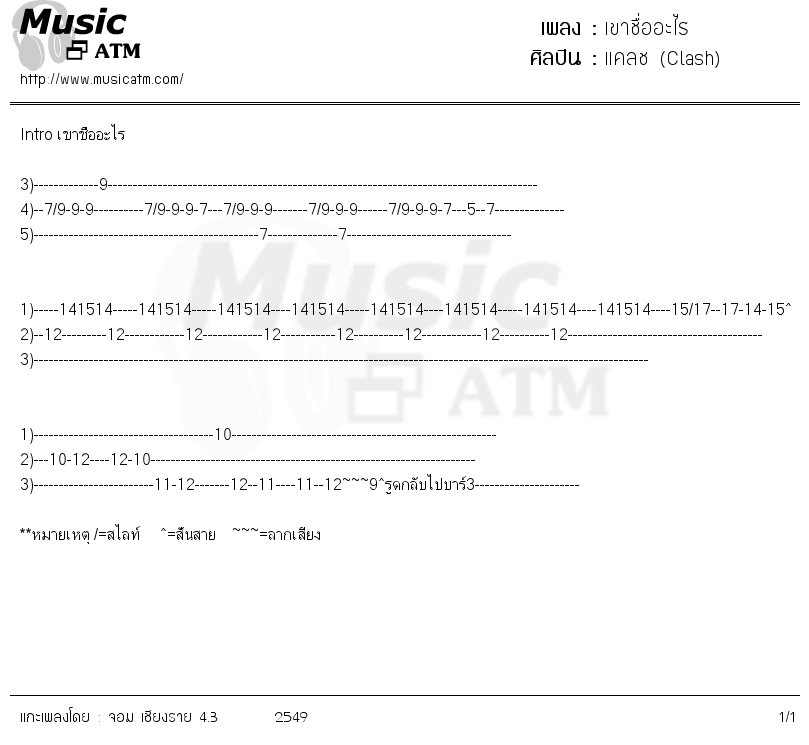 **หมายเหตุ /=สไลท์ ^=สั่นสาย ~~~=ลากเสียง