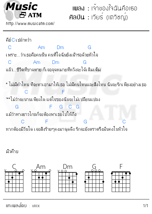 คอร์ดเพลง เจ้าของใจฉันคือเธอ - เวียร์ (เตวิชญ์)