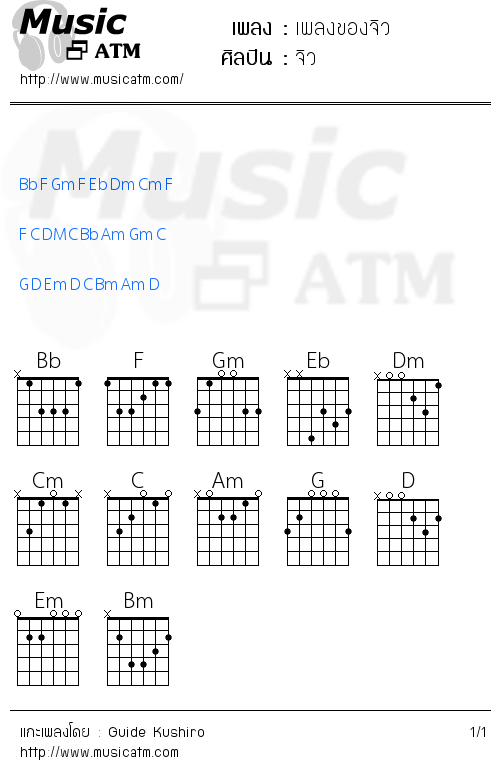 คอร์ดเพลง เพลงของจิว - จิว Version 1 แกะโดย Guide Kushiro เมื่อ 28 มิ.ย.2561,03:53น. ดู 1536 ครั้ง แชร์ 0 0 พิมพ์คอร์ด เปลี่ยนคีย์ -6 -5 -4 -3 -2 -1 คีย์ปกติ +1 +2 +3 +4 +5 +6 5 Bb F Gm F Eb Dm Cm FF C DM C Bb Am Gm CG D Em D C Bm Am D เขียน Tab ช่วยกันปรับปรุงคอร์ด เปรียบเทียบแต่ละเวอร์ชั่น แสดงคอร์ดเพลงเป็นแบบข้อความ ความคิดเห็นเกี่ยวกับคอร์ดนี้ คลิกที่รูป เพื่อแทรกรูปลงในข้อความ โพสต์ความคิดเห็น แสดงเพิ่มเติม แสดงเพิ่มเติม