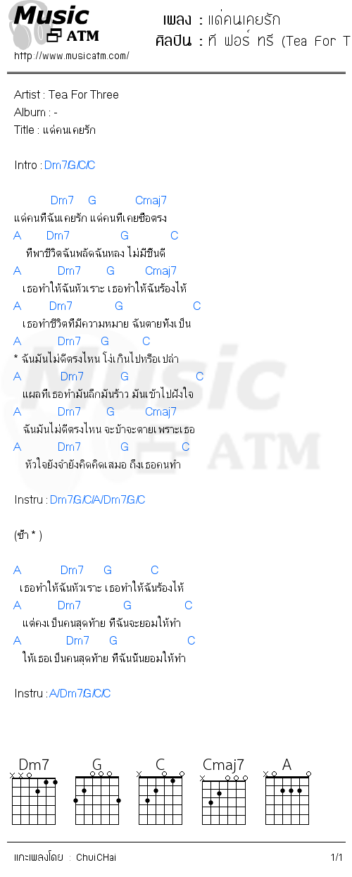 คอร์ดเพลง แด่คนเคยรัก - ที ฟอร์ ทรี (Tea For Three)