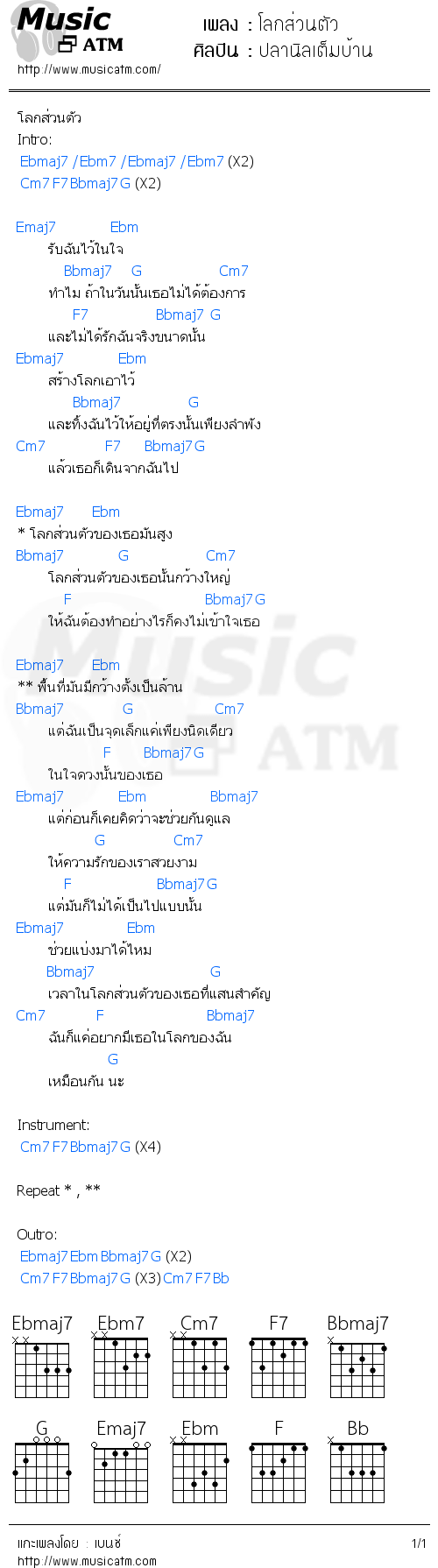 คอร์ดเพลง โลกส่วนตัว - ปลานิลเต็มบ้าน