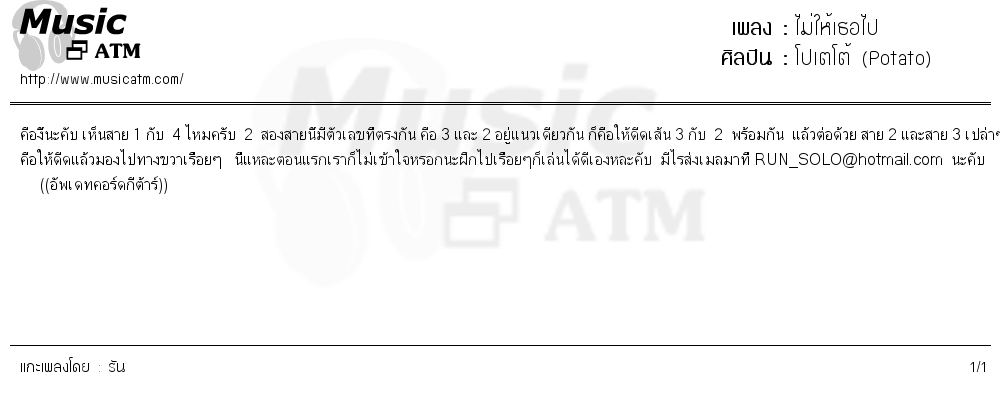 คอร์ดเพลง ไม่ให้เธอไป - โปเตโต้ (Potato)