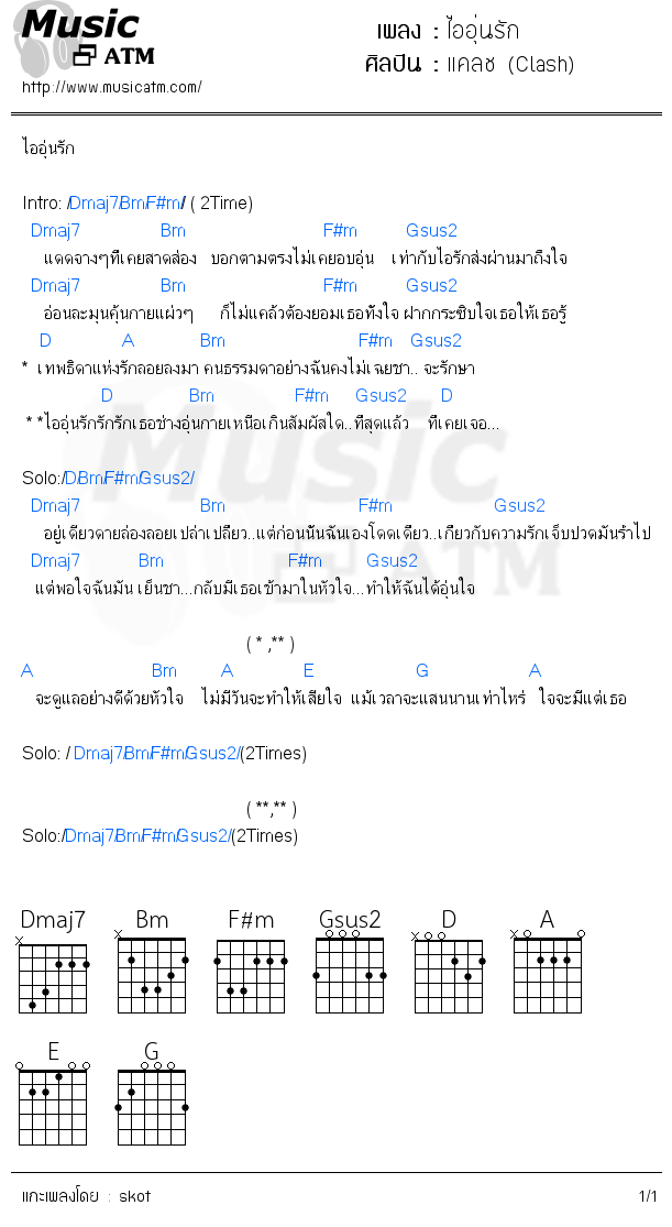 คอร์ดเพลง ไออุ่นรัก - แคลช (Clash)