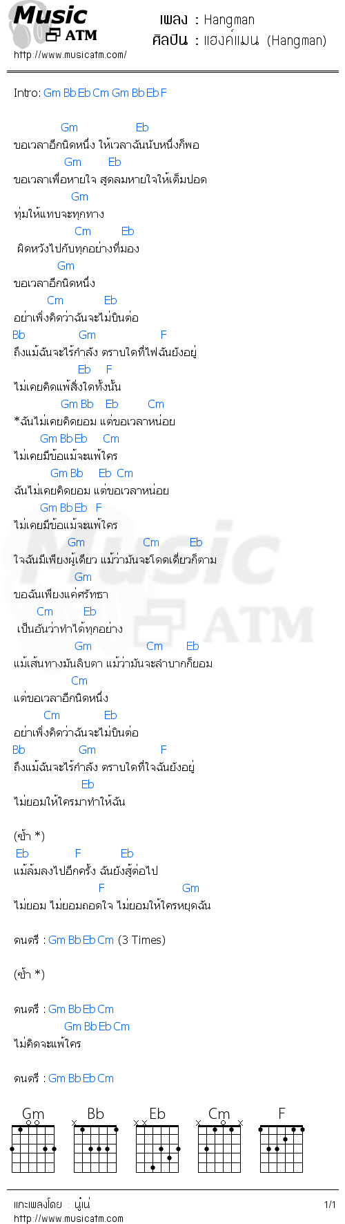 ดนตรี : Gm Bb Eb Cm (3 Times)