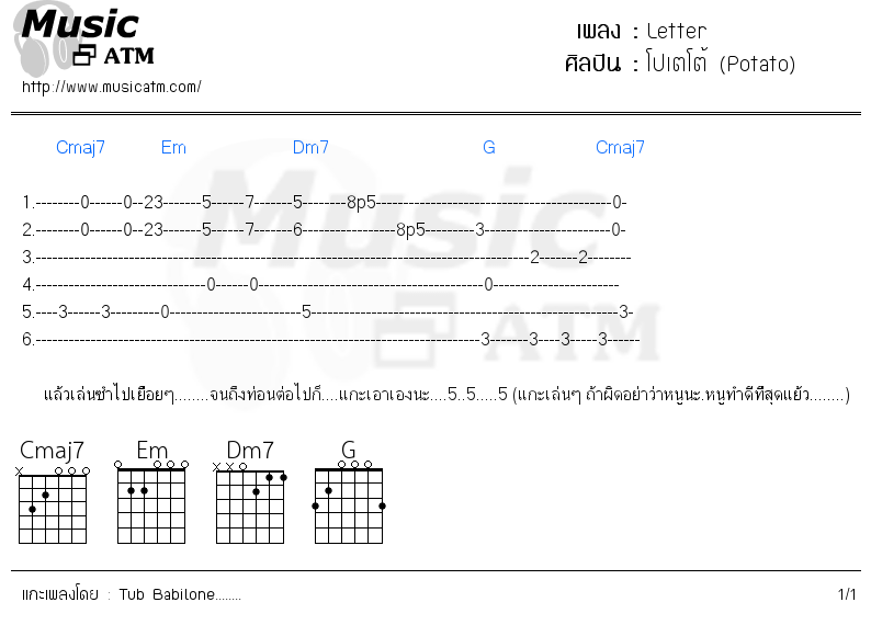 คอร์ดเพลง Letter - โปเตโต้ (Potato)