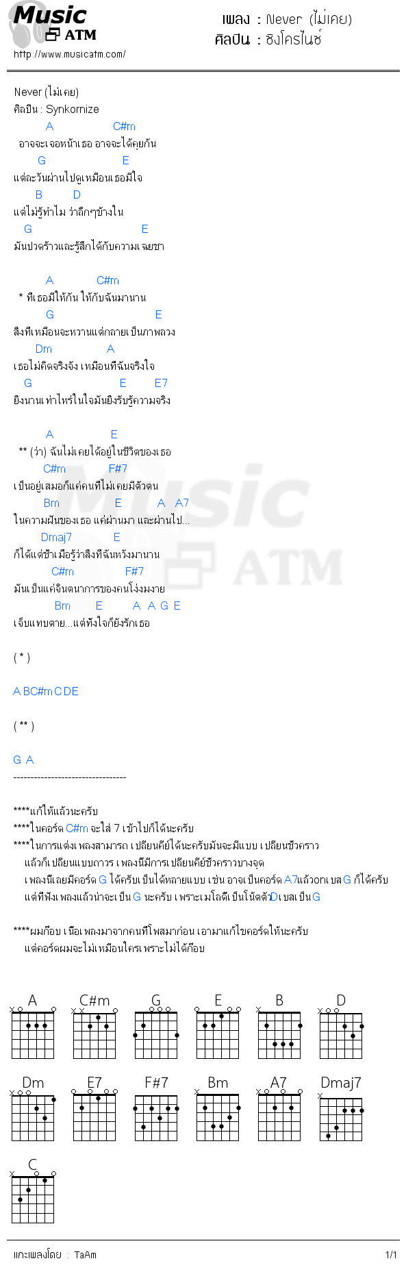 ****ผมก๊อบ เนื้อเพลงมาจากคนที่โพสมาก่อน เอามาแก้ไขคอร์ดให้นะครับ