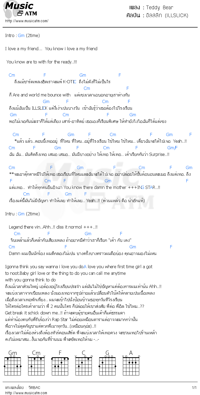 คอร์ดเพลง Teddy Bear - อิลสลิก (ILLSLICK)