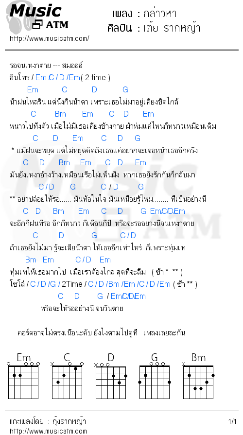 คอร์ดอาจไม่ตรงเนื้อนะคับ ยังไงตามไปดูที่ เพลงเลยละกัน