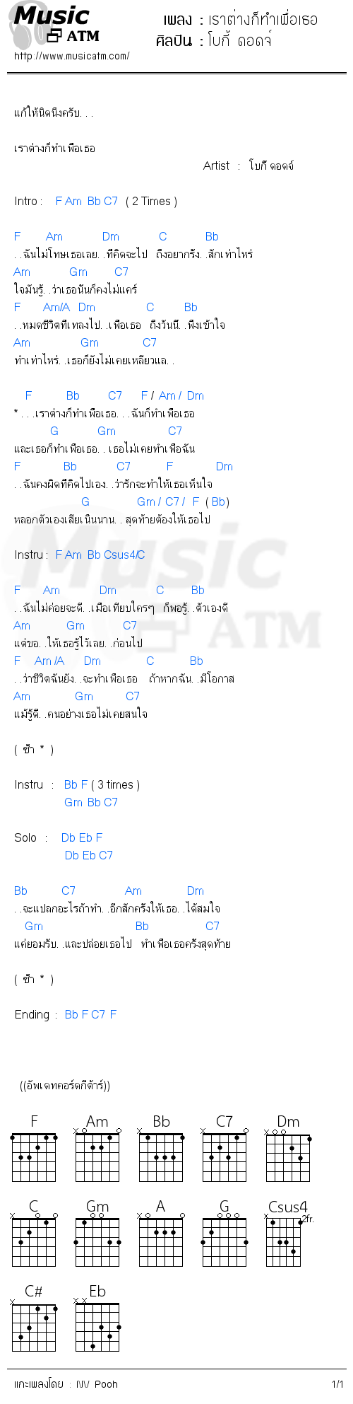 คอร์ดเพลง เราต่างก็ทำเพื่อเธอ - โบกี้ ดอดจ์