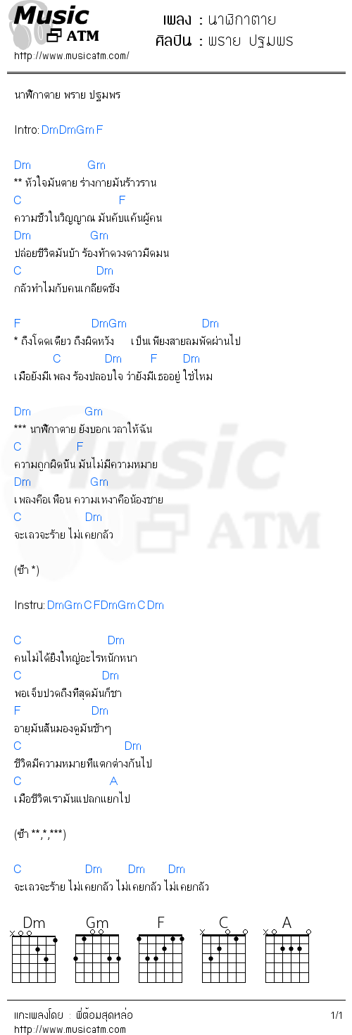 คอร์ดเพลง นาฬิกาตาย - พราย ปฐมพร