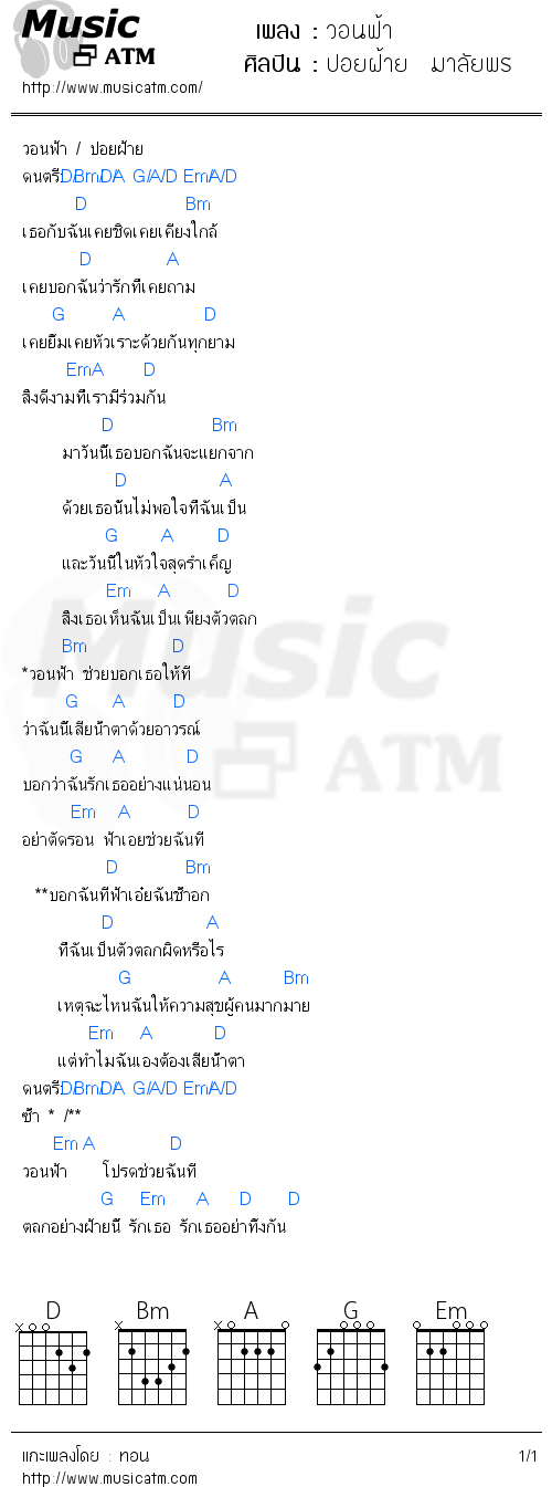 ดนตรี:D/Bm/D/A G/A/D Em/A/D
