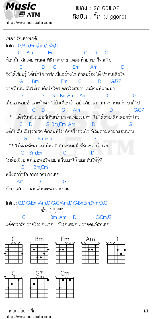 คอร์ดเพลง รักเธอพอดี - จิ๊ก (Jiggoro)