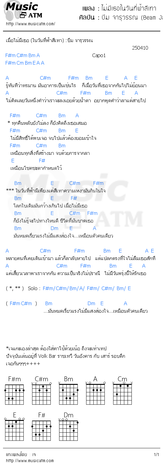 เมื่อไม่มีเธอ (ในวันที่ฟ้าสีเทา) :บีม จารุวรรณ