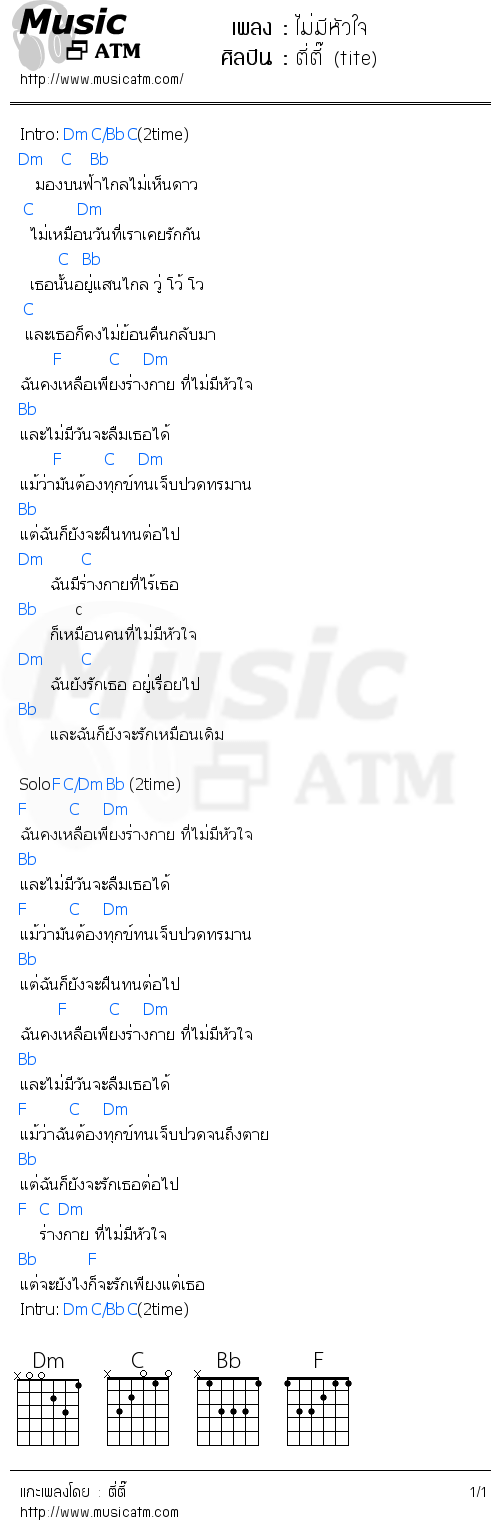 คอร์ดเพลง ไม่มีหัวใจ - ตี่ตี๊ (tite)