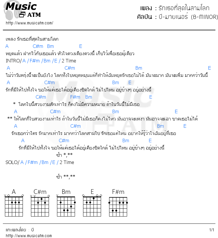 * โลกใบนี้สวบงามสักเท่าไร ก็คงไม่มีความหมาย ถ้าในวันนี้ไม่มีเธอ
