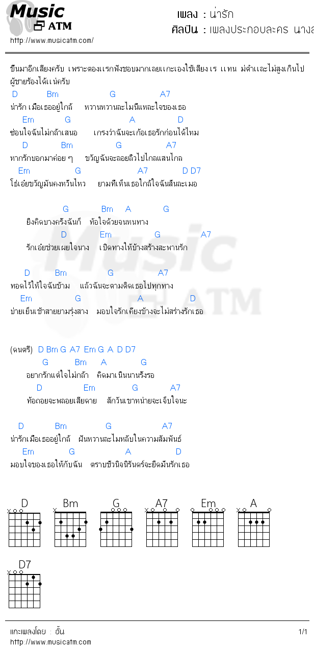 คอร์ดเพลง น่ารัก - เพลงประกอบละคร นางสาวจริงใจกับนายแสนดี
