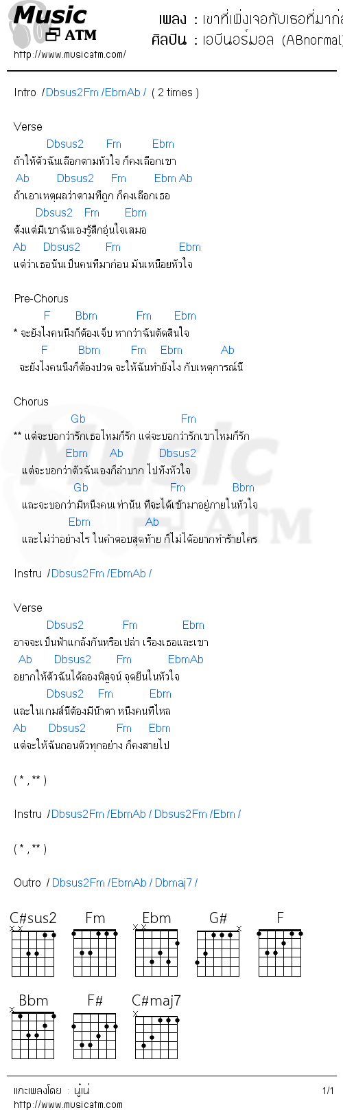 คอร์ดเพลง เขาที่เพิ่งเจอกับเธอที่มาก่อน - เอบีนอร์มอล (ABnormal)