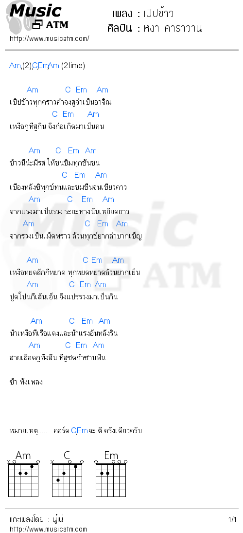 หมายเหตุ..... คอร์ด C,Em จะ ตี ครั้งเดี่ยวครับ