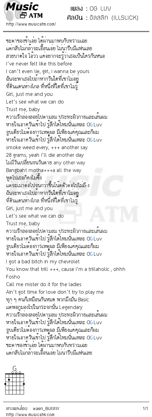 คอร์ดเพลง OG LUV - อิลสลิก (ILLSLICK)