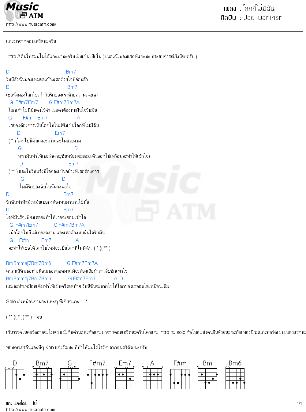 เว้นวรรคในคอร์ดอาจจะไม่ตรงเป๊ะกับคำนะ ละก้อแกะมาจากคอนเสริตนะครับใครแกะ intro กะ solo ก้อโพสแบ่งคนอื่นด้วยนะ ละก้อเพลงนี้ผมแกะคอร์ดเปนเพลงแรกนะครับผิดก้ออย่าว่ากานนะ