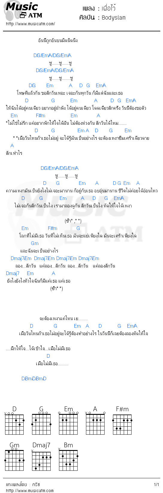 คอร์ดเพลง เผื่อไว้ - Bodyslam