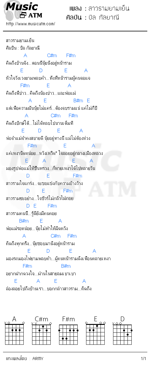 คอร์ดเพลง สาวรามยามเย็น - บิล กัลยาณี