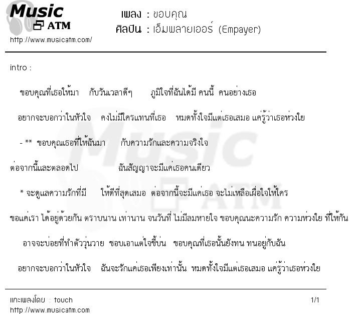 ** ขอบคุณเธอที่ให้ฉันมา กับความรักและความจริงใจ