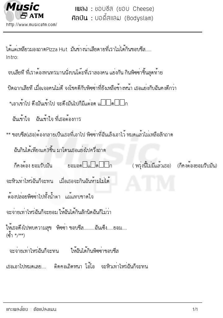 ** ขอบชีส(เธอ)ต้องกลายเป็นเธอที่เอาไป พิซซ่าที่ฉันเล็งเอาไว้ หมดแล้วไม่เหลือสักถาด