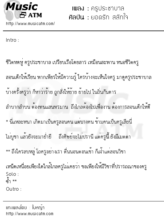 ลำบากลำบน ต้องทนแสนทรมาน ถึงไกลต้องไปเพื่องาน ต้องการสอนเด็กให้ดี