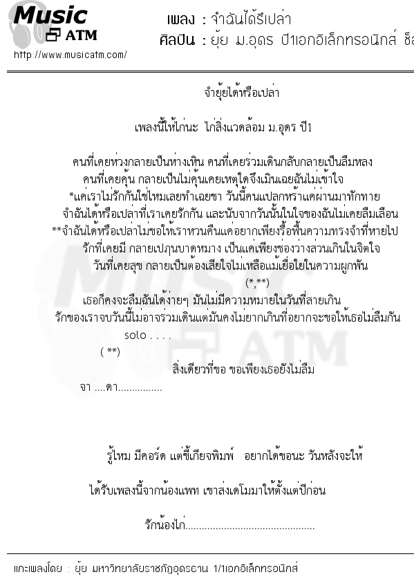 **จำฉันได้หรือเปล่าไม่ขอให้เราหวนคืนแค่อยากเพียงรื้อฟื้นความทรงจำที่หายไป