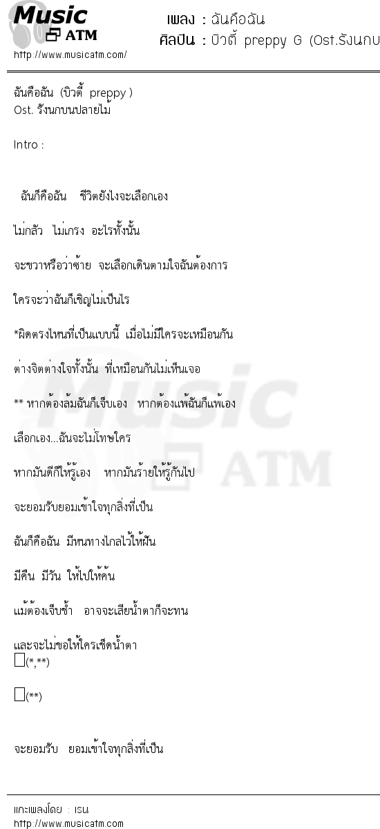 เนื้อเพลง ฉันคือฉัน - บิวตี้ preppy G (Ost.รังนกบนปลายไม้)