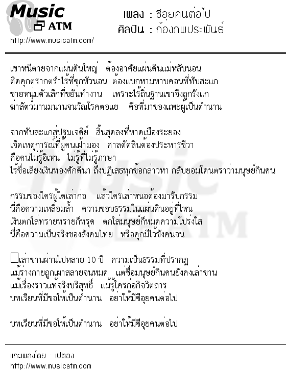 เนื้อเพลง ซีอุยคนต่อไป - ก้องภพประพันธ์