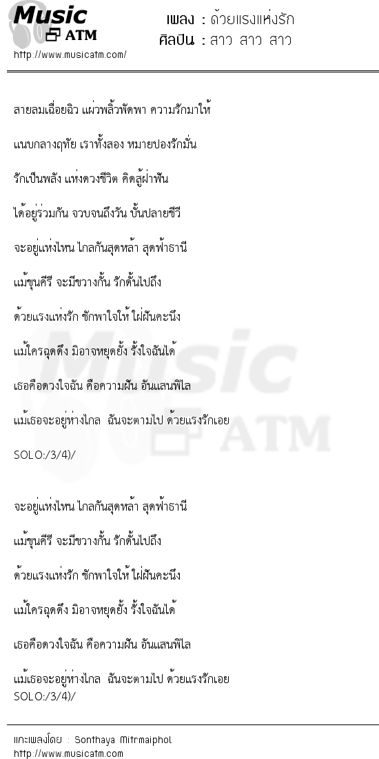 เนื้อเพลง ด้วยแรงแห่งรัก - สาว สาว สาว